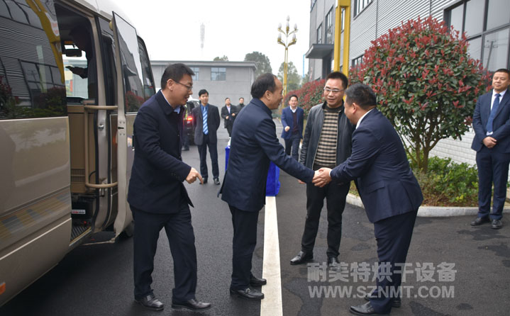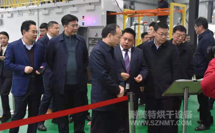 2020年12月9日上午,湖南省常德市委書記、市人大常委會主任周德睿,市委副書記、市長鄒文輝率領(lǐng)全市“開放強市 產(chǎn)業(yè)立市”流動現(xiàn)場會蒞臨湖南省耐美特智能烘干工業(yè)設(shè)備有限公司視察指導(dǎo)工作??h委書記車世忠,縣委副書記、縣長周功表等一行陪同。